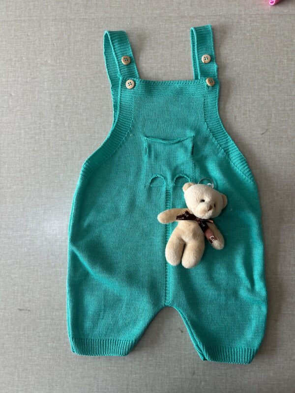 Jardineira Trico Curta Bebê com Ursinho – Estilo e Conforto para os Pequenos