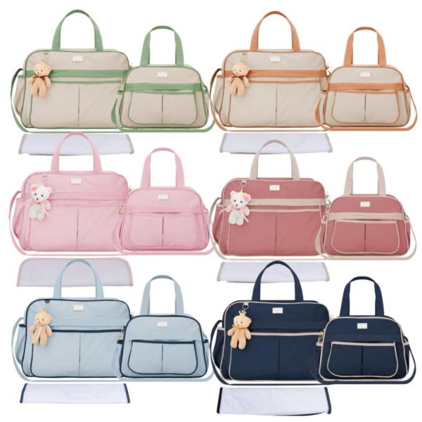 esse kit Bolsa  foi desenvolvido para oferecer praticidade e elegância para as mamães no dia a dia com o bebê. Composto por duas bolsas de tamanhos diferentes e um trocador portátil, é ideal para manter tudo organizado em passeios, consultas e viagens.