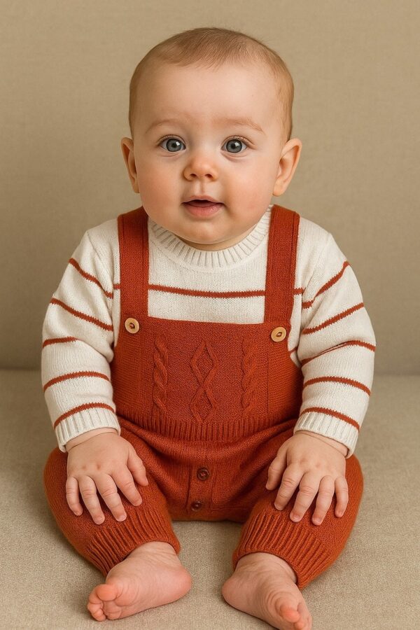 Macacão Jardineira de Tricô para Bebê – Tamanho Único (0 a 6 Meses)