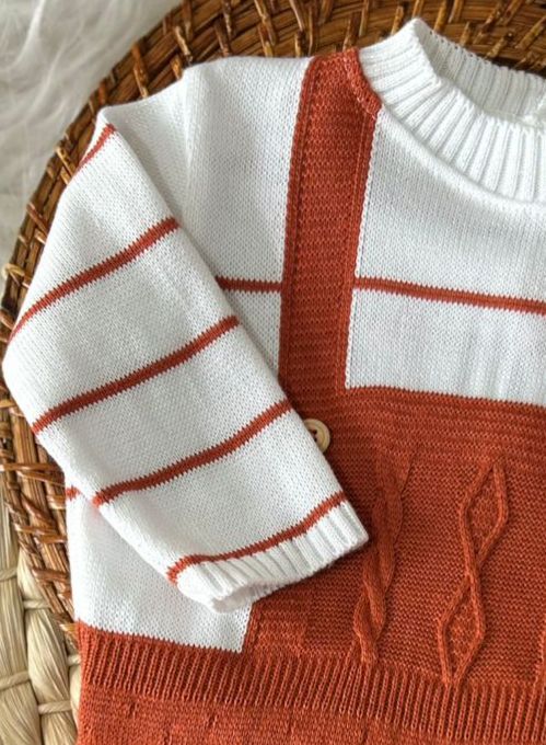 Macacão tipo jardineira confeccionado em tricô macio e confortável, ideal para os primeiros meses do bebê. Possui manga longa com acabamento delicado, trama trabalhada na parte frontal e vira-pé para manter o bebê aquecido. Um modelo prático e charmoso para o dia a dia ou ocasiões especiais.