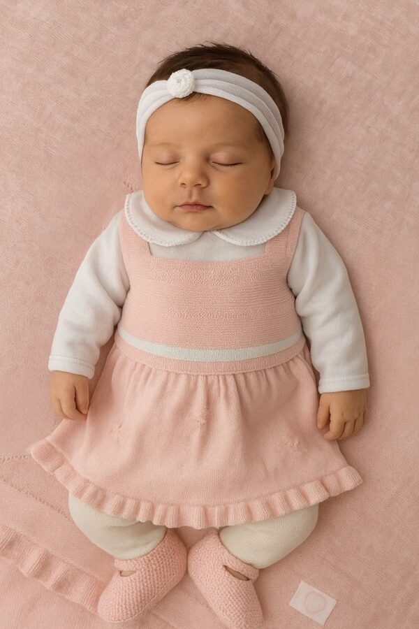 Saída Maternidade Feminina – Conforto e Elegância em Tricô Essa saída maternidade é perfeita para tornar os primeiros momentos da sua bebê ainda mais especiais. Composta por peças delicadas, funcionais e confeccionadas em tricô super macio, ela proporciona conforto, segurança e muito charme desde o primeiro dia de vida. O conjunto contém: 1 vestido de tricô: modelagem delicada com acabamento impecável e toque suave. 1 body branco: com gola delicada e botões de pressão nas costas, que facilitam a troca de roupas. 1 meia-calça macia off white : ideal para manter o bebê aquecido com conforto. 1 par de sapatinhos de tricô: combinando com o vestido, para deixar o visual ainda mais completo. 1 lacinho de cabeça: delicado, confortável e no mesmo tom do conjunto. 1 manta de tricô: medindo 78 cm x 78 cm, perfeita para envolver o bebê com aconchego nos primeiros dias. Essa saída maternidade é ideal para registrar o primeiro look do bebê, receber visitas ou sair da maternidade com estilo e carinho. Perguntas Frequentes Serve para recém-nascido? Sim, o conjunto é indicado para bebês rescem nascidos O tricô pinica ou esquenta demais? Não. O material é leve e muito macio, feito especialmente para a pele sensível do recém-nascido. A manta é grande? Sim, a manta mede 78 cm x 78 cm, no tamanho ideal para envolver o bebê com conforto. Pode lavar na máquina? Para maior durabilidade, recomendamos lavar à mão ou no ciclo delicado da máquina.