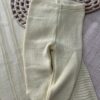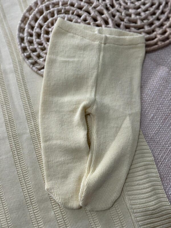 Calça em tricot com pezinho, garantindo praticidade e aquecimento.