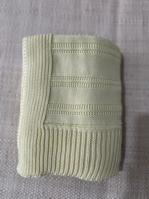 Manta coordenada, no mesmo tricot trabalhado, macia e charmosa.