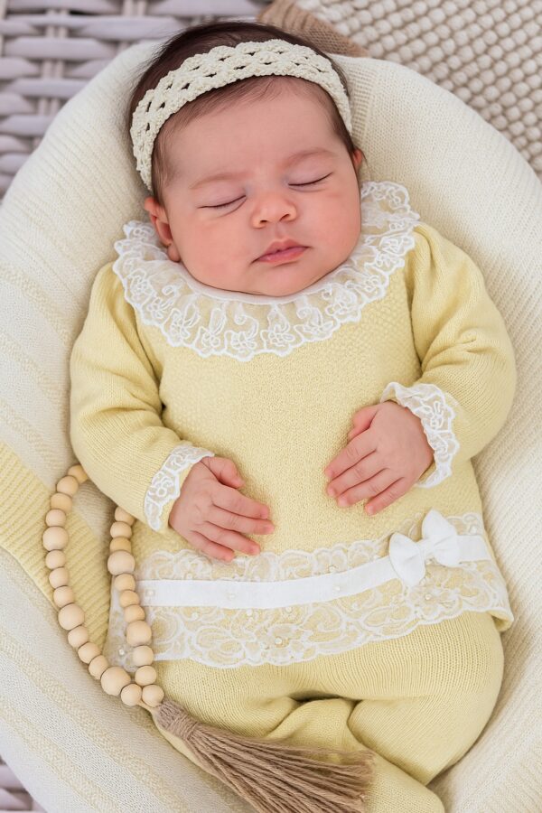 Saída de Maternidade Helena – 4 Peças em Tricot com Renda