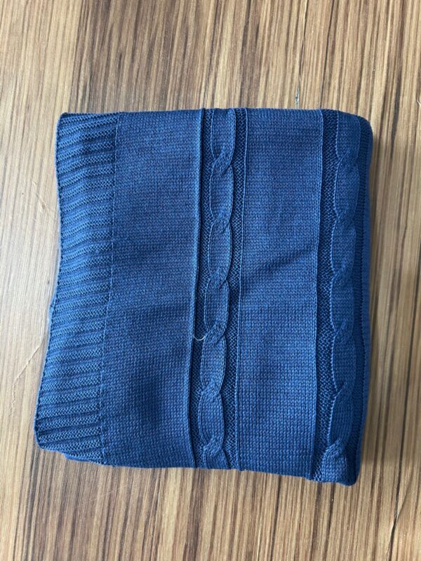 Acompanha manta de tricô no tamanho 78cm x 78cm, ideal para manter o bebê aquecido e protegido, combinando perfeitamente com o macacão.