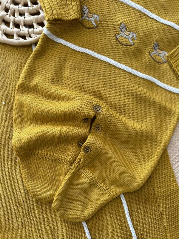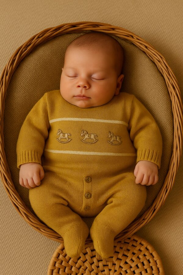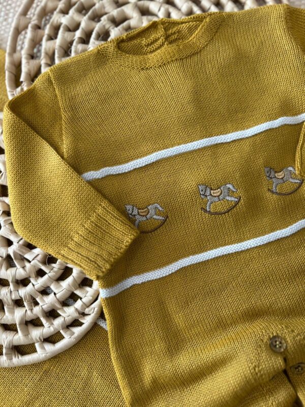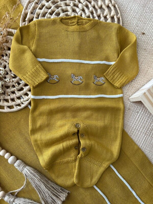 A Saída de Maternidade Lucas foi desenvolvida para proporcionar todo o conforto e elegância que o momento da chegada do bebê merece. Confeccionada em tricot macio, traz como detalhe especial os bordados de cavalinhos, que deixam a peça delicada e cheia de charme.
