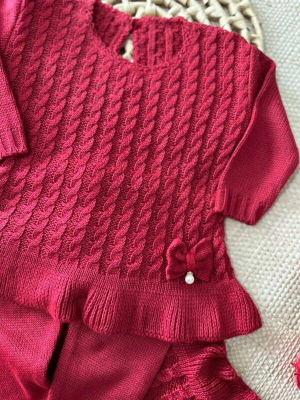 Saída de Maternidade Manuela – 3 Peças em Tricot com Laço e Pérola