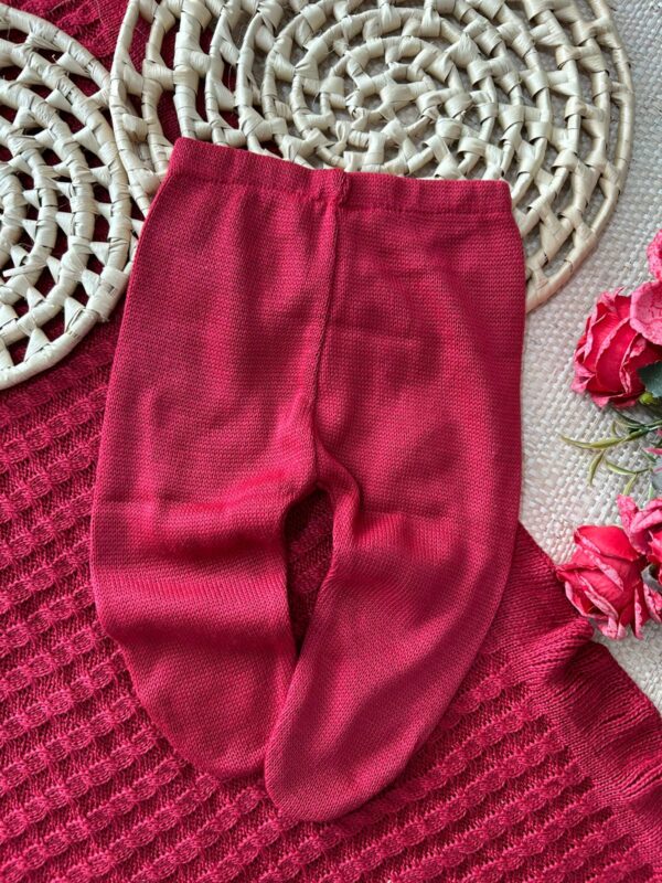 • Calça em tricot com pezinho, que mantém a bebê aquecida e confortável.